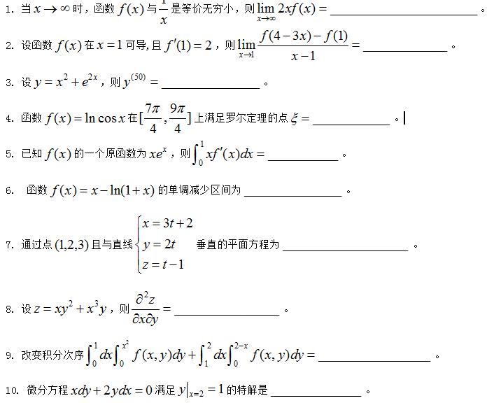 2020年湖北成人高考专升本《高数一》预习试题及答案7 一、填空题:[查看详情]